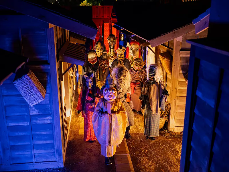 在燈籠的照耀下,浮現出夢幻般的街道。